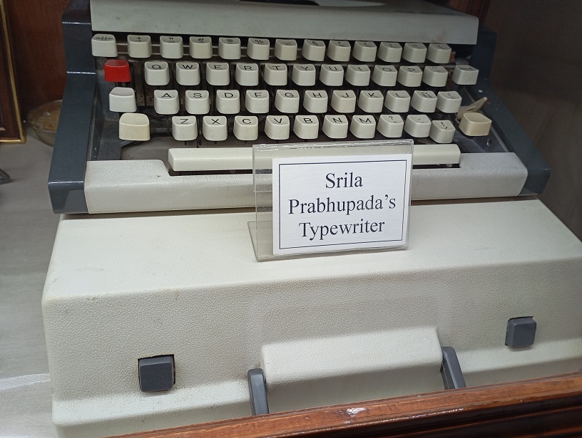 Šia mašinėle Prabhupados rankomis buvo atspausdinta daugybė vedinių šventraščių lapų.