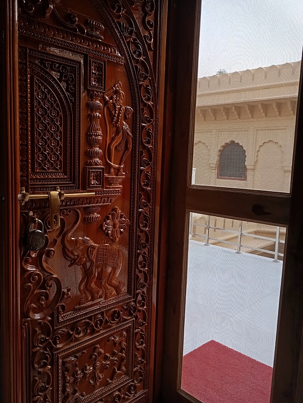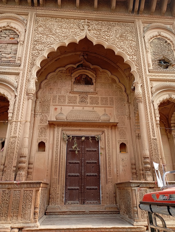 Bhaktivedantos ašramas (vienuolynas), buvę radžos rūmai, statyti prieš pora šimtų metų pagal vedų architektūros meną vastu.