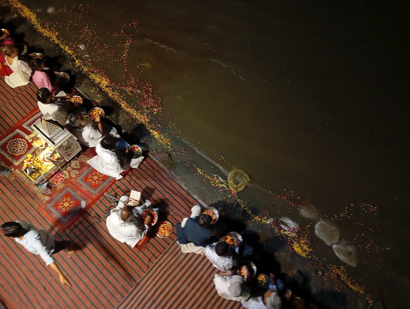 Indija yra vienas svarbiausių pasaulio religijos centrų. Čia pilna piligrimų. Jie visur: gatvėse, šventyklose, kavinėse, upių pakrantėse. Visur daug piligrimų. Dauguma jų vietiniai, bet atvyksta ir baltaodžių. Ne po muziejus jie čia atvažiuoja vaikščioti, ne po galerijas ar teatrus, kino teatrus, bet ieškoti savęs, Dievo, tarpusavio ryšio. Dievo dažniausiai susigriebiam po sunkumų, traumų, netekčių, transformacijų ar atsitenkinimo šio pasaulio pyragais ir kitais malonumais. Nors pyragas skanus, bet jo daug nesuvalgysi, o jei valgysi daugiau, bus bloga. Pyragais užkiši tik skrandžio, bet ne sielos poreikius. Sielai reikia erdvės, šilumos, šviesos, bendravimo, tarnystės aukštesnėms sieloms. Vakaruose mes žiūrime į veidrodį, sukamės apie save, gal dar apie šeimą. Bet tai nėra viskas, taip neužsipildysim. Jei tai, ką veikiame kasdien nuo 8 val. ryto iki 5 val. vakaro, mūsų neužpildo, vadinasi, prarandame save. Mes arba pildomės, arba prarandame save. Vakarų pasaulyje labai akcentuojamas darbas, ir tai natūralu, nes astronomiškai Vakarus labiau įtakoja Saturnas. Ši planeta – sunkaus fizinio darbo, karmos planeta. Tuo tarpu Rytus labiau įtakoja Merkurijus, intelekto planeta. Čia žmonės neatiduoda savęs vien tik darbui, nes supranta, kad fizinio darbo reikia tik tiek, kad pramaitintume pilvą ir turėtume stogą virš galvos. Sunku įsivaizduoti Vrindavano (piligriminis miestas) gatvės sadhu (išminčiai) besiilsinčius kuriam nors Turkijos ar Egipto kurorte. Jie ilsisi savyje, ryšyje su Dievu. Jiems nereikia pamokslauti, nes jau pamokslauja jų gyvenimo būdas, išvaizda, žvilgsnis, veido mimika, nuo jų sklindanti energija. Kūnai jų čia likę, o sąmonė yra anapus. Jiems nerūpi aplinkinis triukšmas, purvas ar vargas, nes jie gyvena anapus. Tik mes, europiečiai, atsargiai laipiojam tarp šiukšlių, praeidami paglostom karvę ar užsikišam ausis nuo stiprių tuk-tukų garso signalų. Net ir vos dvi savaitės užterščiausioje pagal oro rodiklius pasaulio vietoje atnešė daug gražių realizacijų. Čia galima pasimokyti, kaip neskubėti, nusiraminti, prisėsti, pamąstyti, tiesiog būti. Niekur čia nenubėgsi, nepriskubėsi, visų pasaulio pinigų neuždirbsi ir visų tortų nesuvalgysi. Čia puiki erdvė pamąstyti, kas esu, iš kur esu, ką čia veikiu, kur keliausiu toliau. Kyla daug klausimų.
